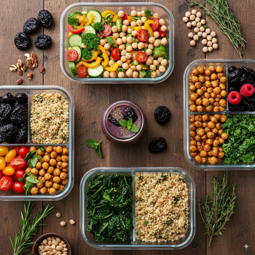 A few sample fiber-rich meal ideas: breakfast could be oatmeal topped with berries, chia, and walnuts; lunch might be a mixed bean salad with quinoa and vegetables; dinner may include lentil or chickpea curry with brown rice and side greens; snacks could be sliced apple with peanut butter or carrot sticks with hummus. Over time, aim to reach or exceed your target (for many adults, 25–35 g daily is a common benchmark; some guidelines go higher).