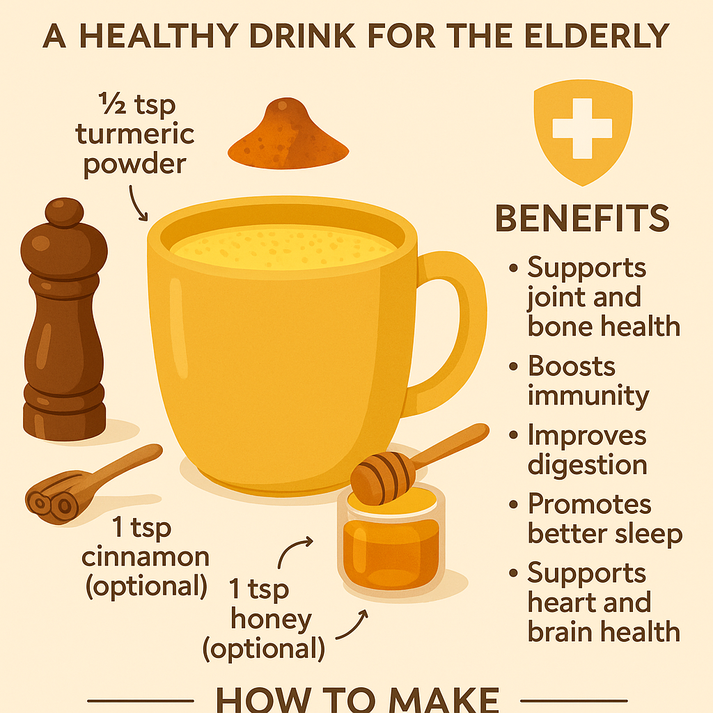 Curcumin in turmeric enhances immune response, helping the body fight infections. Combined with milk’s protein and vitamins, it becomes a natural immune booster—especially important for seniors during flu seasons or weather changes.