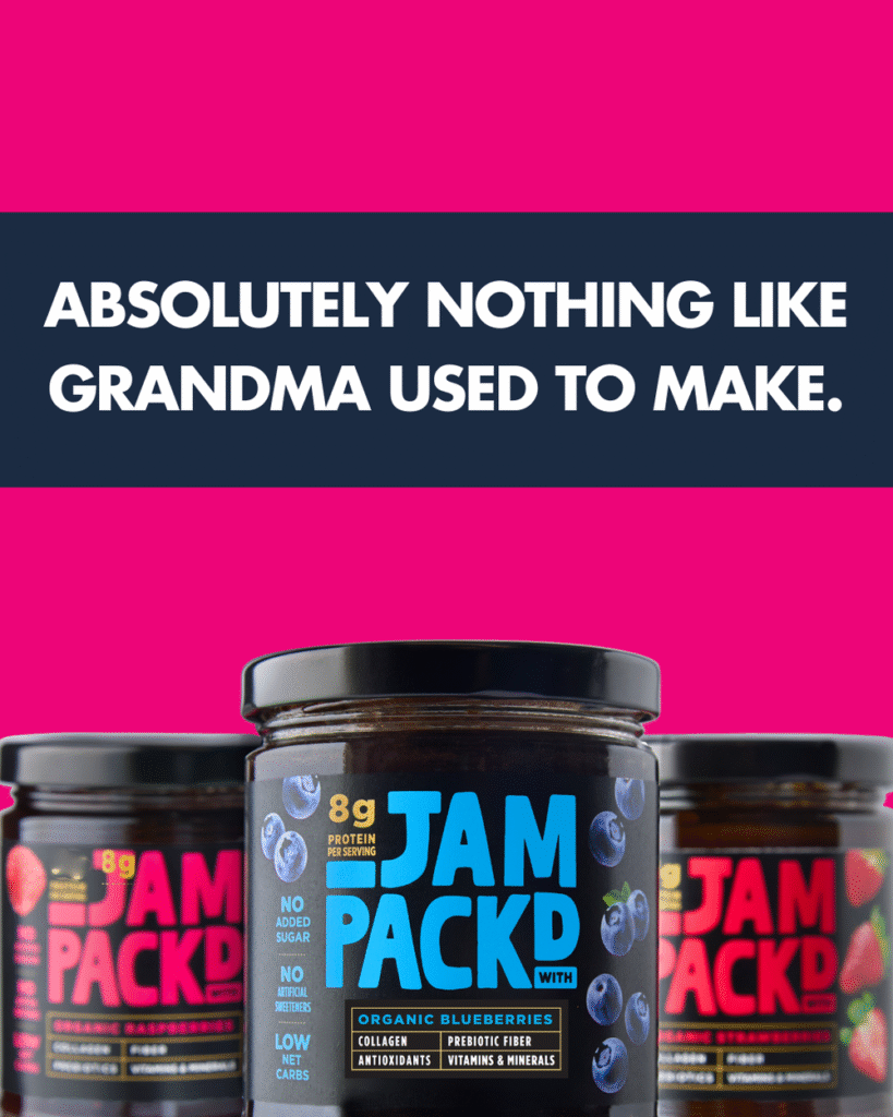 Starting Jam Packd wasn’t cheap. Before even testing their recipes, the Platts invested about $20,000 into foundational costs. This covered trademarking, legal fees, logo and packaging design, a website, and initial product research. They also worked with a food scientist specializing in protein to create a recipe with the right taste and consistency.