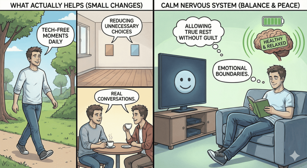 Small changes calm the nervous system more than big life overhauls.