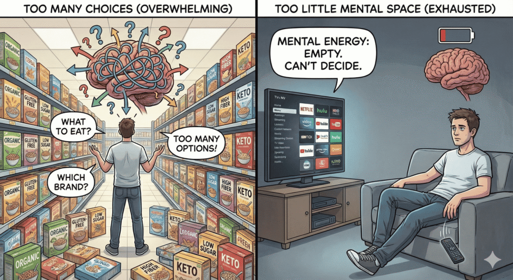 Every decision consumes mental energy. By the end of the day, the mind feels exhausted not from effort, but from constant deciding.