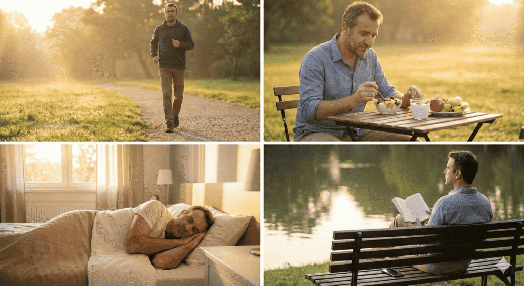 From a scientific standpoint, gentle morning movement activates the parasympathetic nervous system, regulates cortisol levels, and resets the body’s circadian rhythm. Sunlight in the first hour of the day supports melatonin production later at night, improving sleep quality.