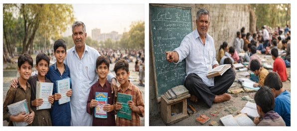 Master Ayub’s journey didn’t begin in a traditional classroom or with the resources typically available to teachers. Instead, he started with a simple belief that every child deserves an education, regardless of their circumstances. In the streets of Islamabad, where many children are born into poverty, Ayub saw potential in every one of them. With nothing more than a blackboard and a deep passion for teaching, he began to offer free education to children who had no other access to schooling.